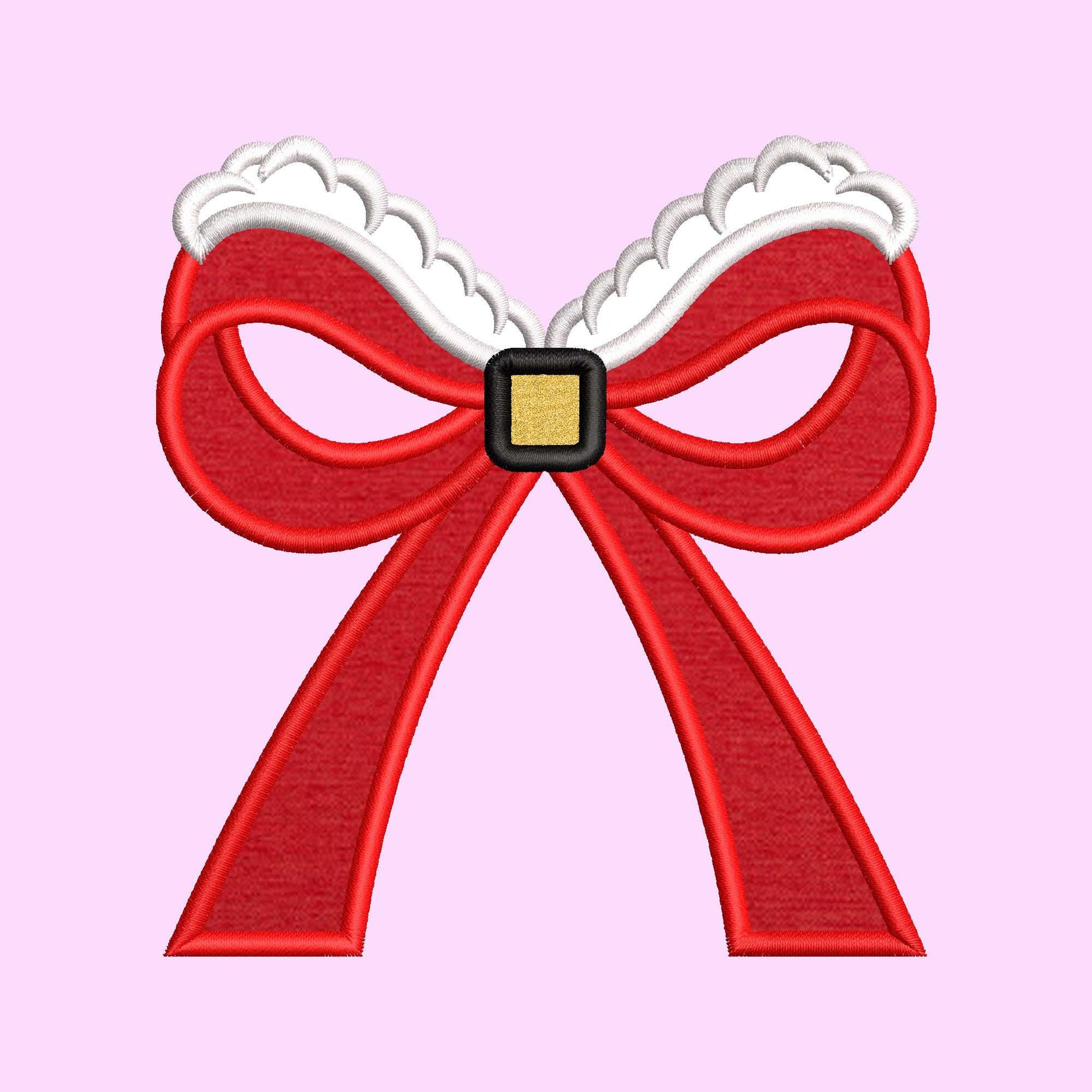 Christmas Side Bow Embroidery Satin Stitch Applique Design 6 Sizes