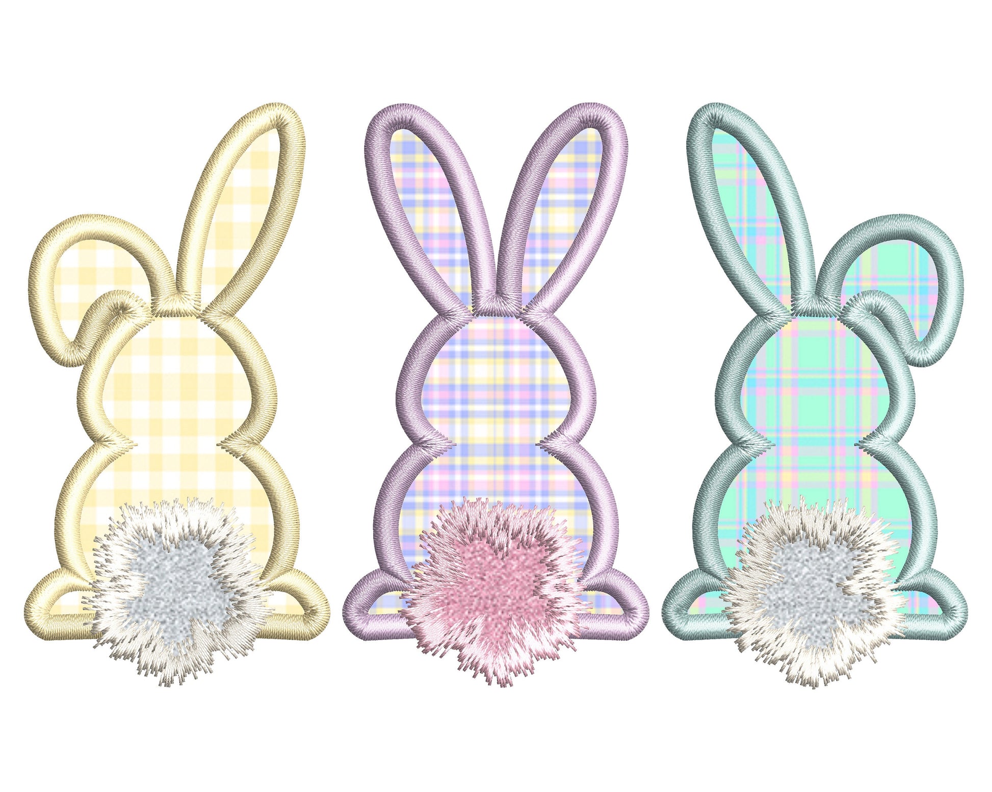 Easter Bunny trio applique embroidery design. Satin stitch embroidery applique.