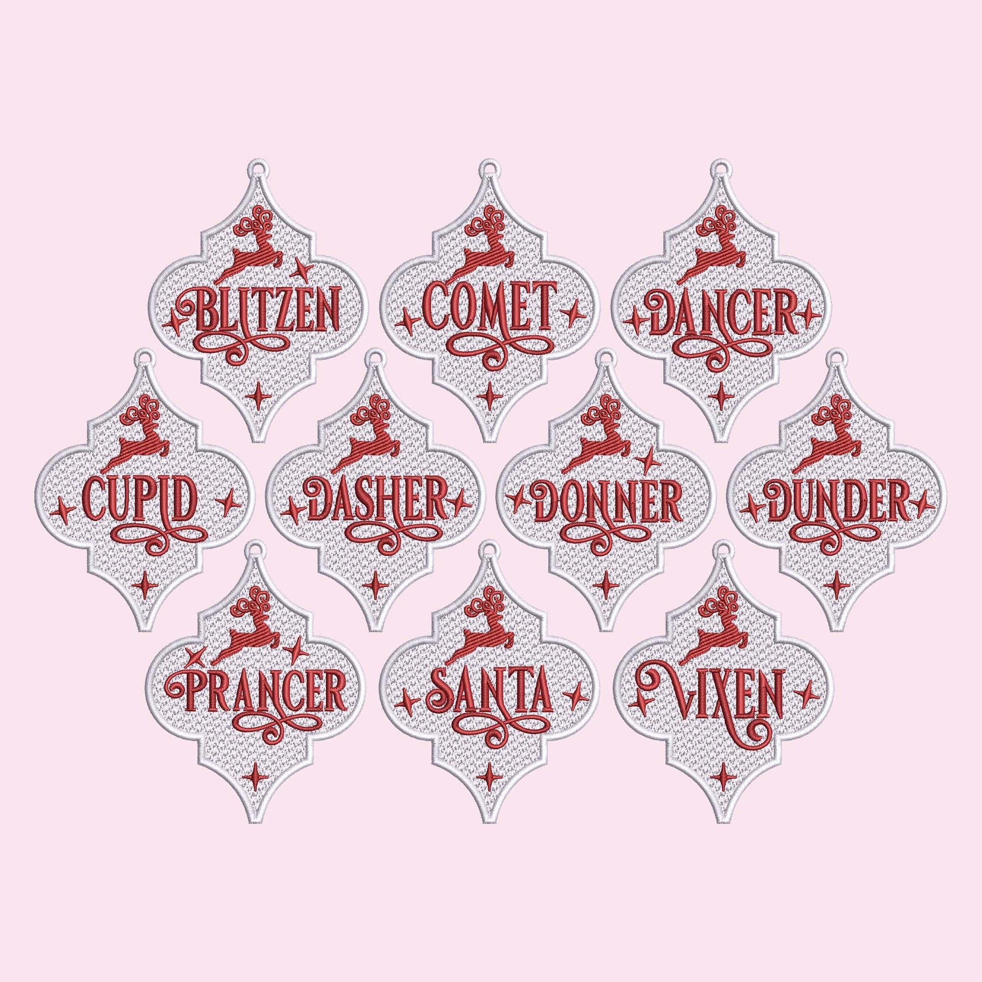 Freestanding Lace Arabesque Reindeer Ornament Embroidery Design Bundle - Christmas Embroidery Design
