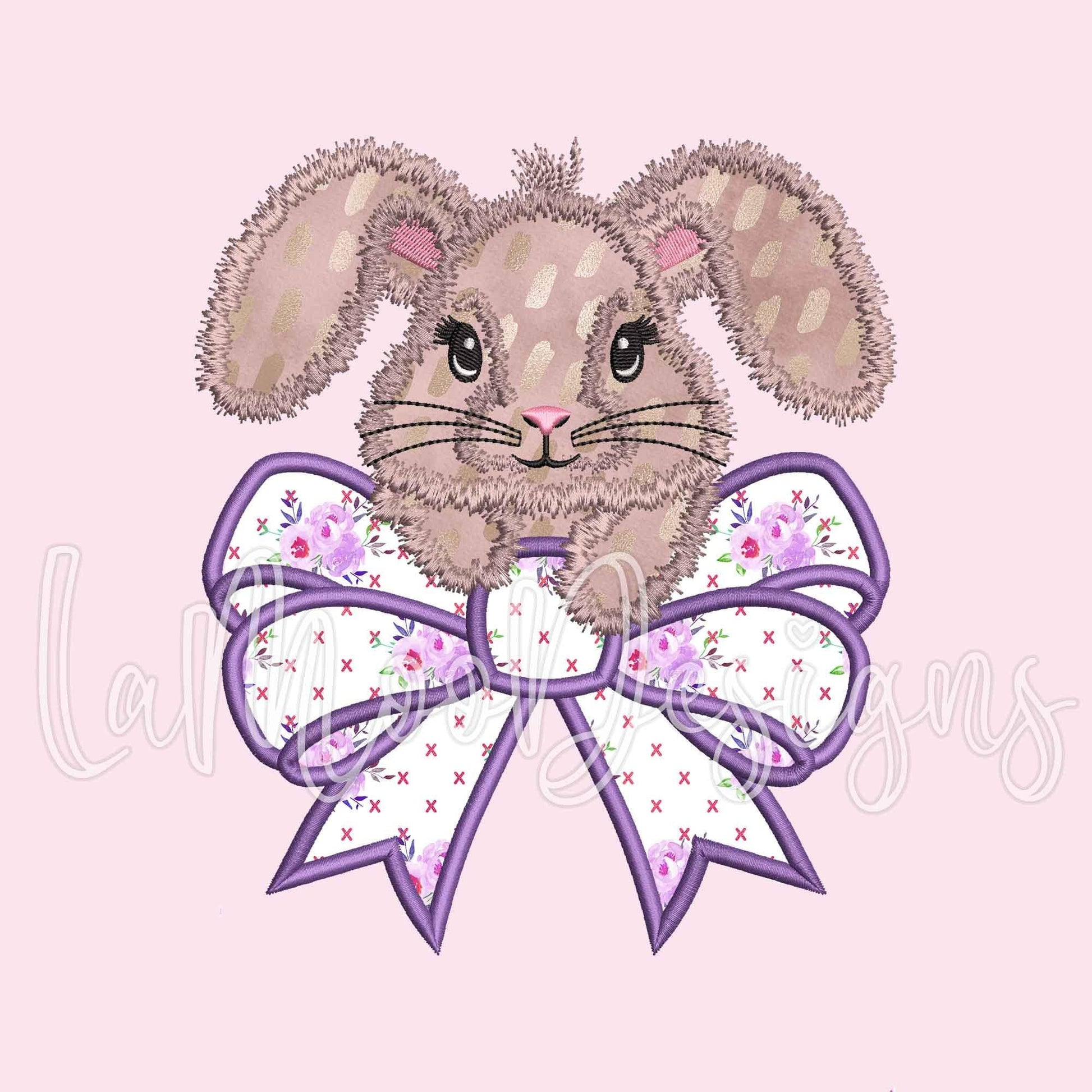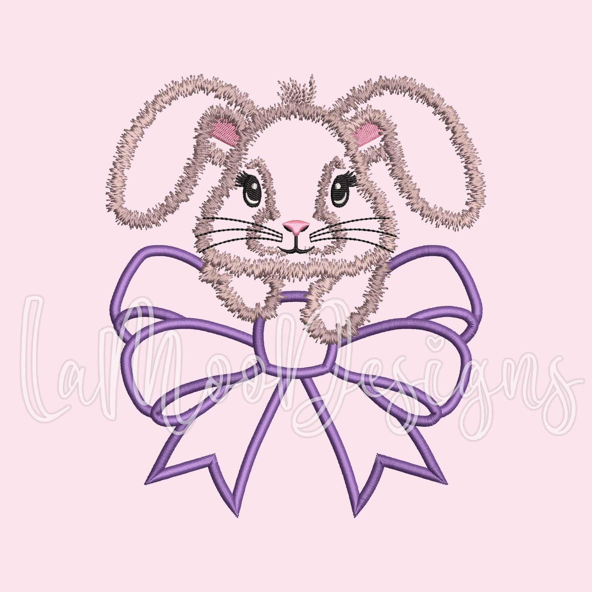 Side Seam Bunny Satin Stitch Applique Embroidery Design with Bow