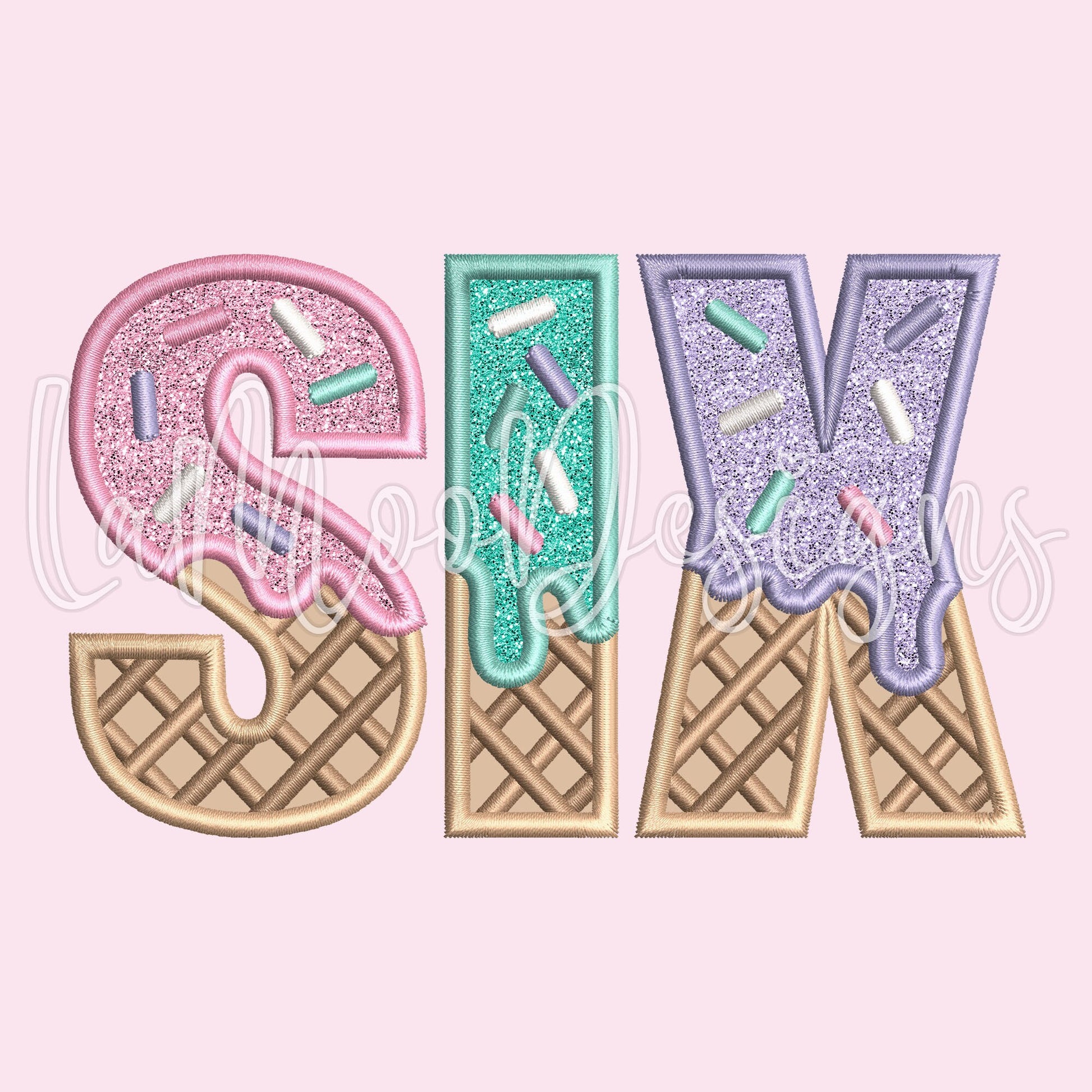 SIX - Ice Cream Waffle Cone Birthday Embroidery Satin Stitch Applique Design