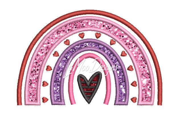 Valentine's Day Rainbow Satin Stitch Applique Embroidery Design