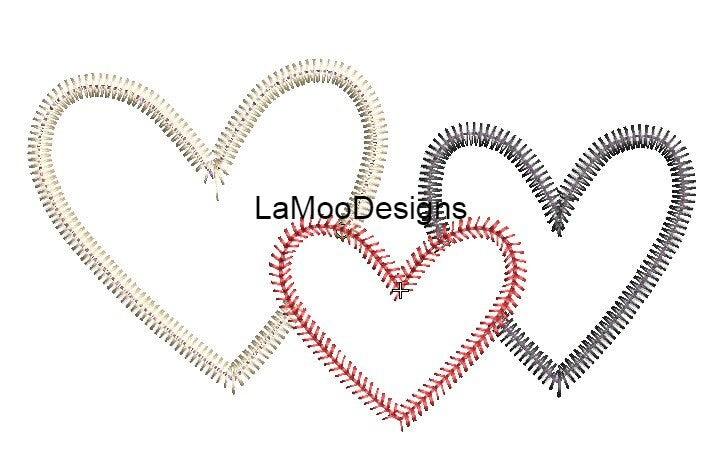 Valentine's Day Zigzag Applique Hearts Embroidery Design